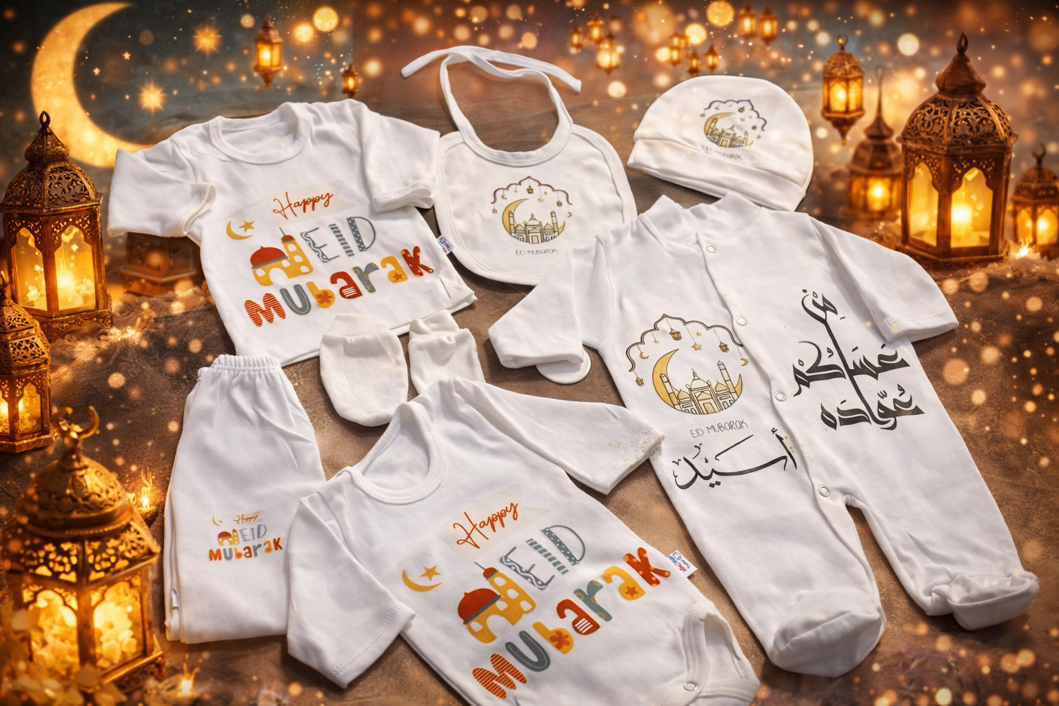 لأن أول عيد لطفلك هو لحظة مميزة في حياة العائلة، جهّزنا لكم هذه البدلة الرائعة المكوّنة من 7 قطع كاملة، لتمنح صغيركم إطلالة جميلة ومليئة بالفرح في يوم العيد.