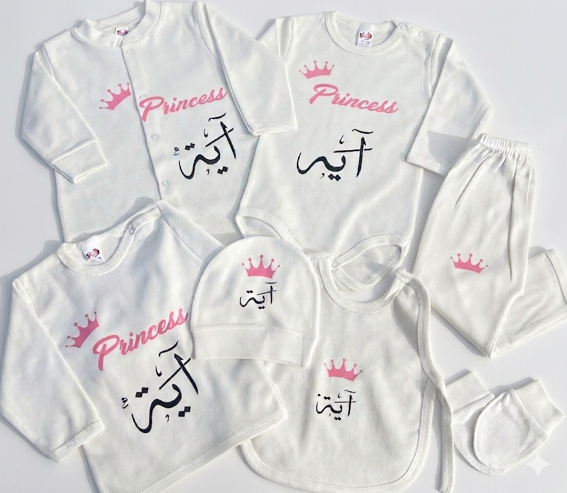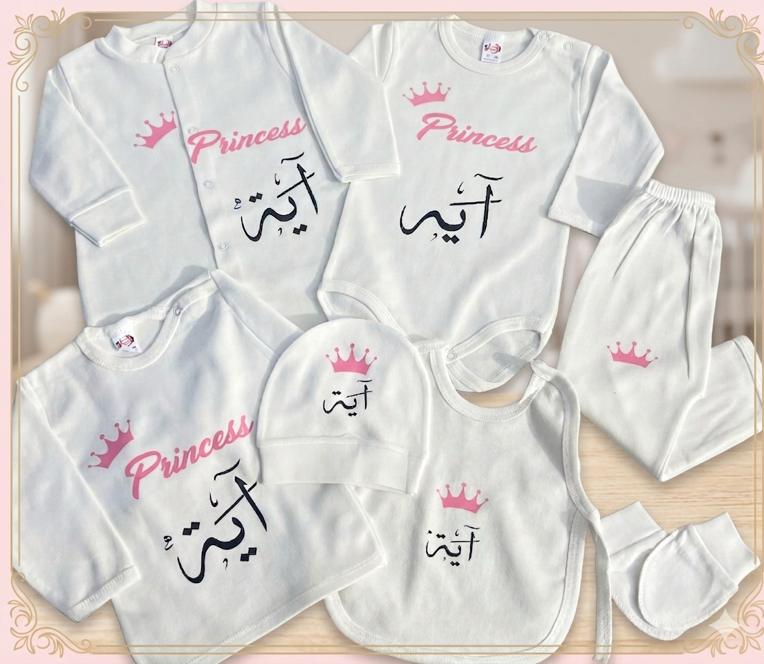 يُعد هذا الطقم الخيار الأول لهدايا “السبوع” والمواليد الجدد، حيث يجمع بين القيمة المعنوية (الاسم) والجودة العملية التي تبحث عنها كل أم.